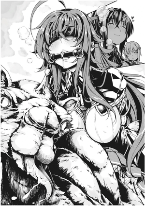 Claramente satisfeita, a Akeno-san sorriu para a Buchou, que ainda estava nas mãos da Xenovia. Ah, percebi imediatamente que ela também havia direcionado suas tendências sádicas para sua melhor amiga.