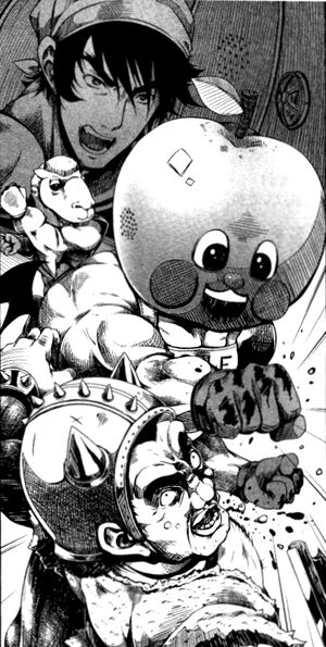 – Aparentemente você está atacando uma vila próxima? Não podemos deixar bandidos como você impunes. Como Bapple-kun, mascote da Casa Bael, vou punir você! Bapple-kun disse.