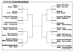 Agora que o mestre de cerimônias apareceu no palco, as câmeras da mídia de todas as mitologias se voltaram para ele e a cerimônia começou. Após Ajuka Beelzebub-sama, um dos anfitriões do torneio, dar os parabéns, o sorteio começou. O rei de cada equipe entrou em cena e tirou da caixa uma bola com um número, que passou para o staff sem dizer nada a ninguém.